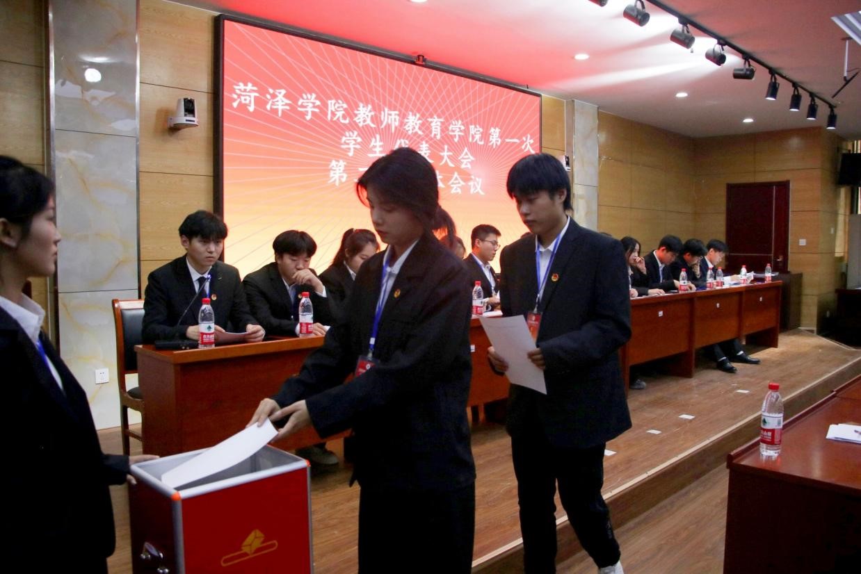 大会审议表决通过了《常任代表会议代表名单》《教师教育学院第一次学生代表大会关于第六届学生会工作报告的决议(草案)》《菏泽学院教师教育学院学生会章程(试行草案)》《大会倡议(草案)》,选举产生了教师教育学院第七届学生会主席团成员、参加菏泽学院学代会的学生代表。