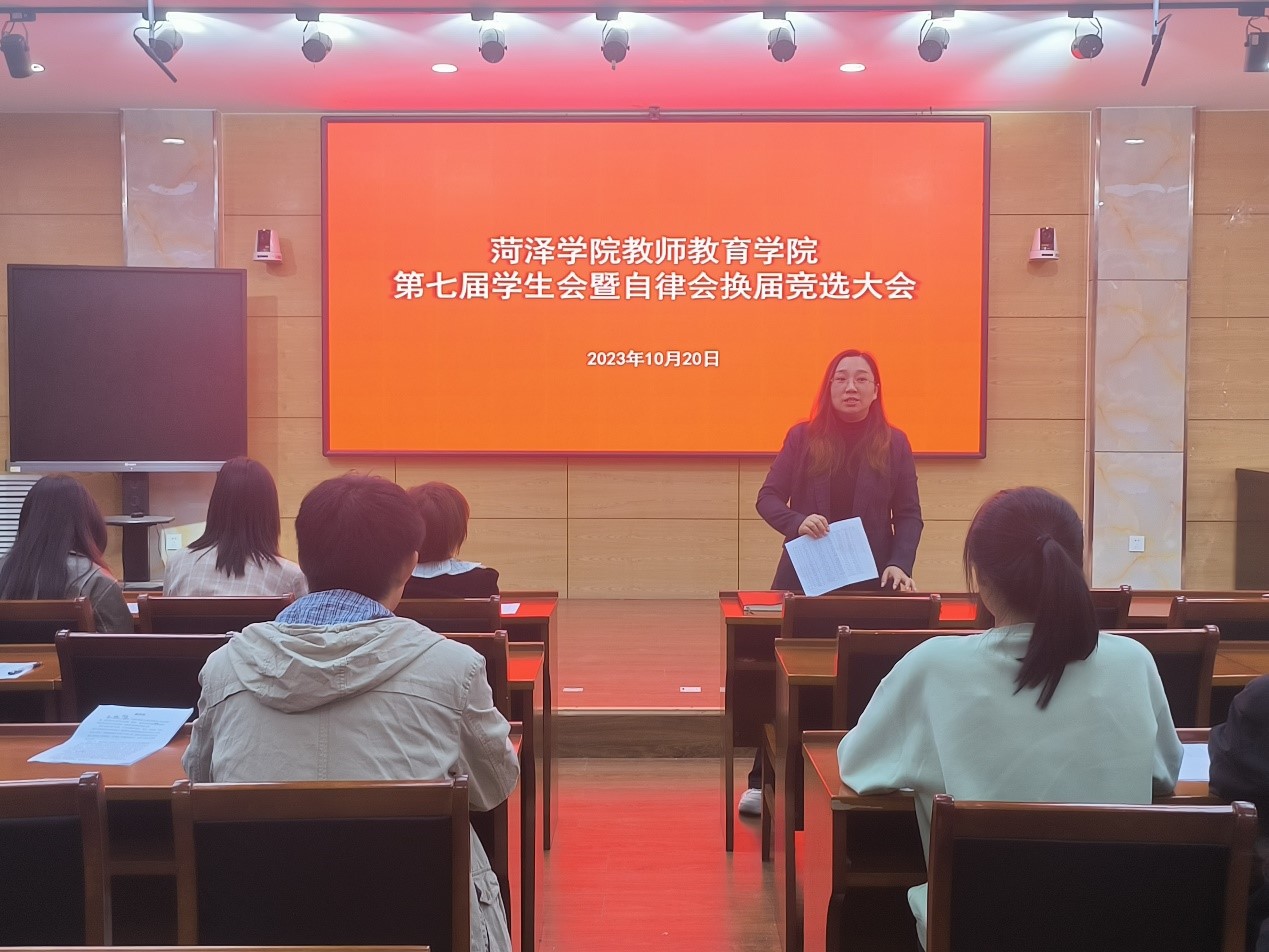 10月20日上午,我院在教师教育图书馆108会议室举行第七届学生会暨自律会换届竞选大会。我院党委副书记李婷,学工办主任(团委书记)潘洪珍,全体辅导员及部分学生代表参加本次大会。