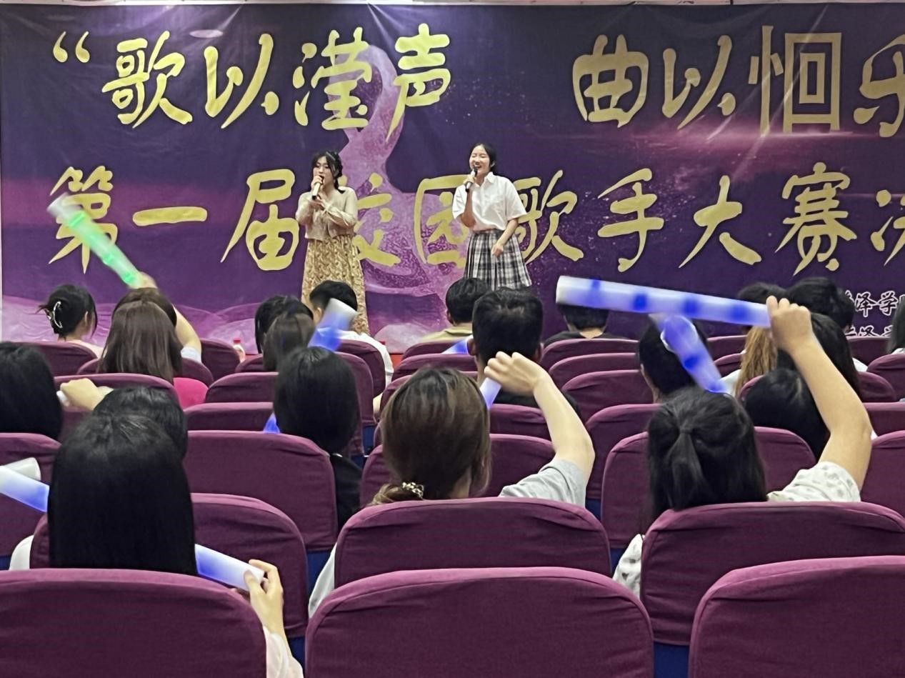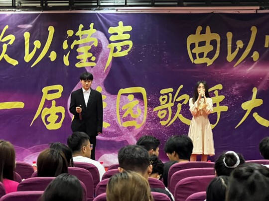 本次活动,现场氛围活跃,演唱形式多样。其中,2022级小学教育专业公费班的杜心莹和陈悦的《有何不可》带领同学们瞬间走进轻松一刻,在充满治愈的歌声中跟随选手一起挥动起来,点燃现场氛围;2021级小学教育专业3+4四班的庞敬博和2021级土木工程专业本科班赵焱瑜两人对唱的《一次就好》默契十足,动听的旋律配上暖心的歌词令听众感动不已,展现了两位选手超强的歌唱实力。