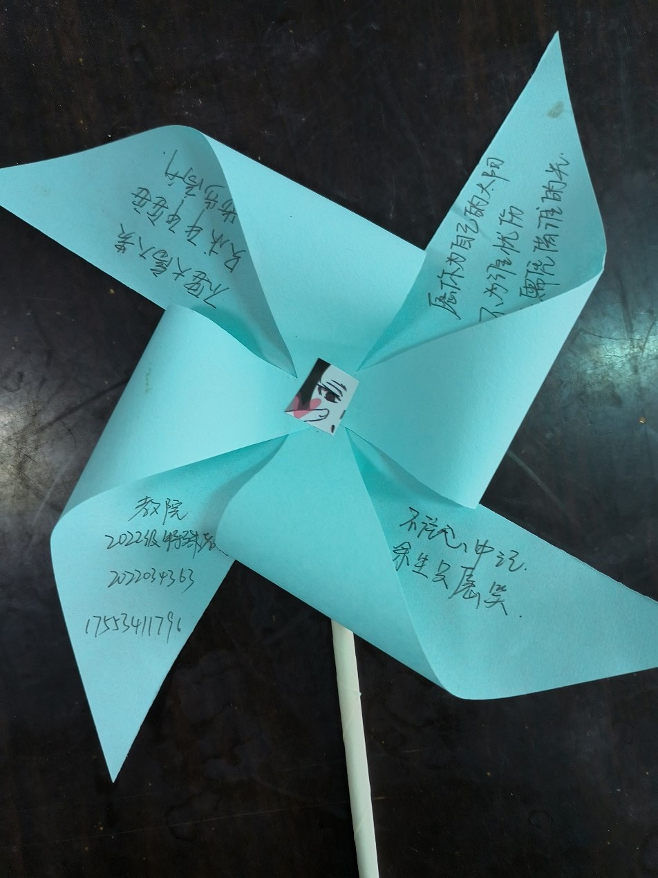 5月31日上午,教师教育学院举办的以“告白风车,告白自己”为主题的活动在8号教学楼411室进行。我院学子积极参与。