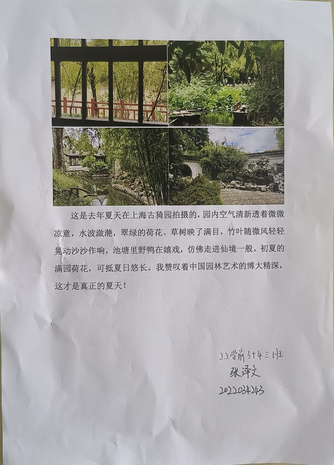 2022级学前教育3+4三班张译文