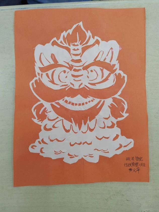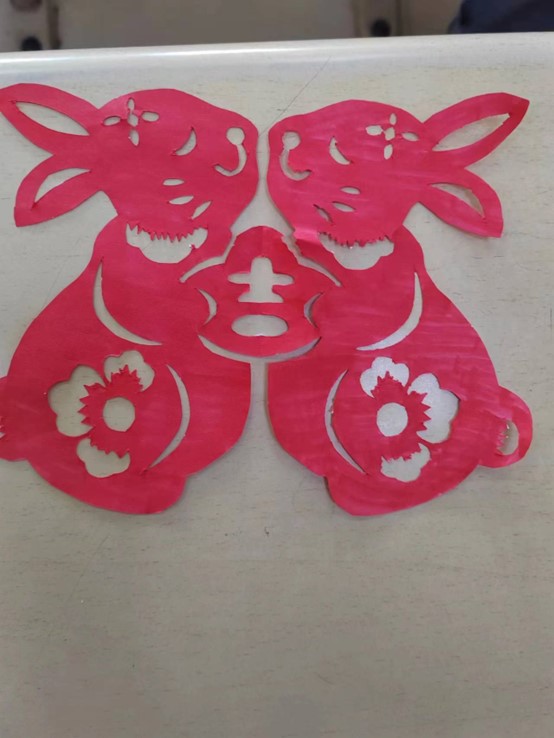 本次活动以手工剪纸为主,内容丰富,题材多样。其中,2021级学前教育专业3+4二班白一冉将红色卡纸变成了一对紧密相拥的兔子,活泼可爱;2022级政法学院行政管理二班黄义萍用细腻的手法将一张剪纸呈现出代表着新年气息的怪兽“年”的形象,形象生动突出,带有浓厚的国潮风。