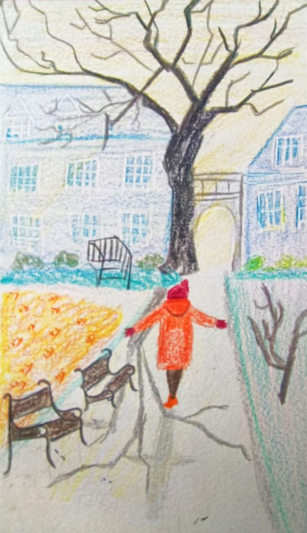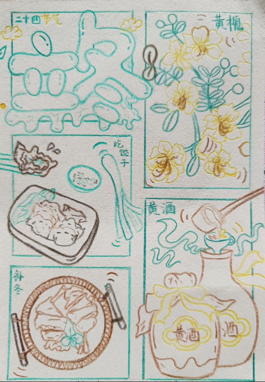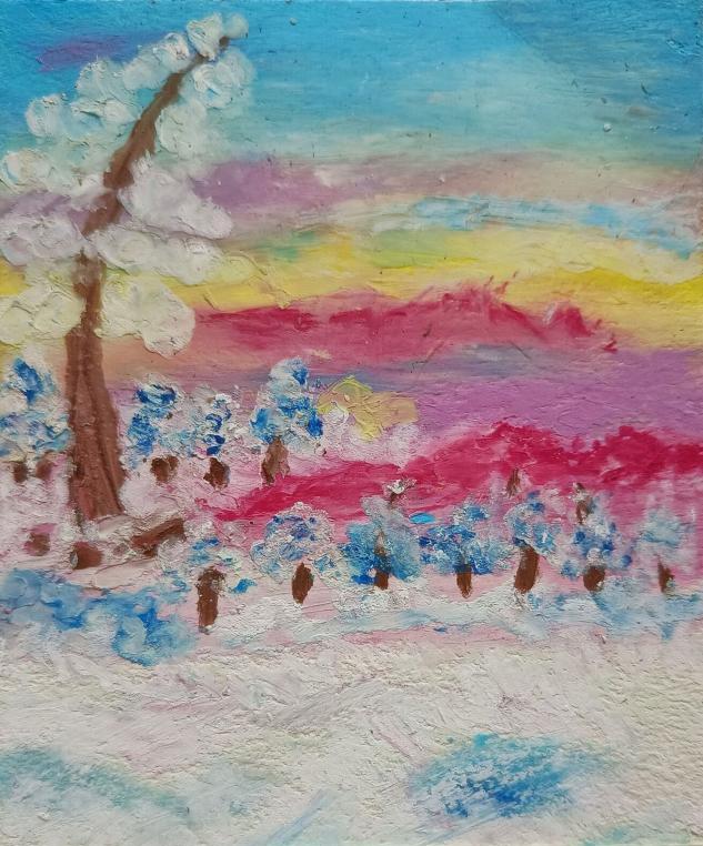 本次活动,同学们在创作过程中利用各种自然元素,将自己对冬的感受融入作品中。其中,2022级小学教育专业公费班高樱乐以油画的形式展现冬季的美,皑皑的白雪覆盖在远山起伏的曲线上,将天地万物银装素裹,一幅漫天雪花的冬日景象跃然纸上;2021级小学教育专业3+4二班孙语晗的作品,流畅的线条和和谐的搭配,无处不体现着作者对冬季的热爱。