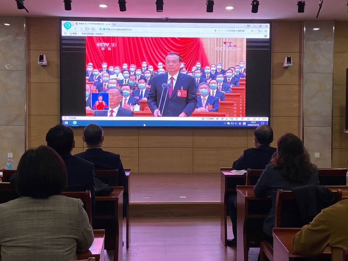 党的二十大报告令人振奋,倍受鼓舞。报告明确了大会主题,回顾了过去五年的工作和新时代十年的伟大变革,对未来党和国家事业发展做出了战略安排,规划了清晰路径,既有理论创新,又有实践指导。收看过程中,大家边看边听,边学边记,同步感受体悟党和国家迈进新的历史阶段的奋进脉搏。接下来,我院将把深入学习贯彻党的二十大精神作为当前的首要政治任务,迅速抓实学习领会、兴起学习热潮,并将党的二十大精神融入到学院各项事业发展,争取在新的征程上创造更好的成绩。