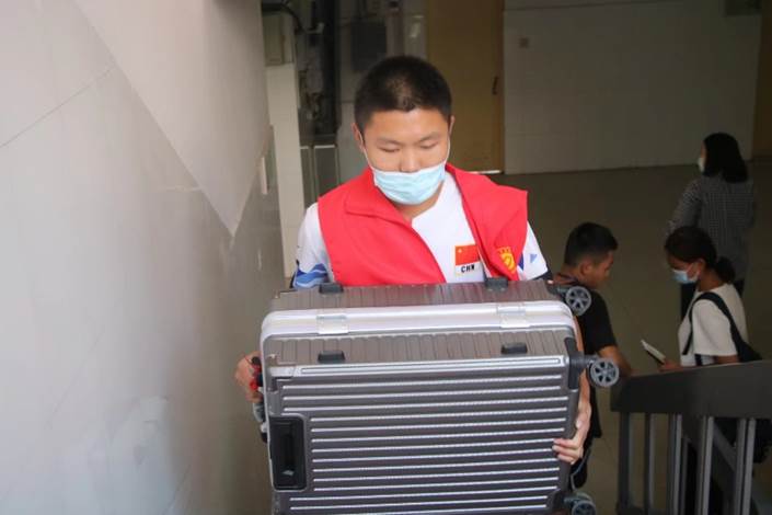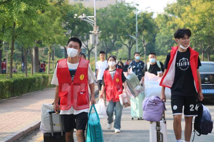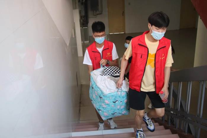 志愿者带领着新生们往返于迎新点与新生宿舍之间,为新生搬行李、指方向、购置生活物品,帮助新生整理床铺。对于新生来说,这是他们进行的第一次独立生活,他们满心好奇和期待进行宿舍打理,憧憬着大学生活。