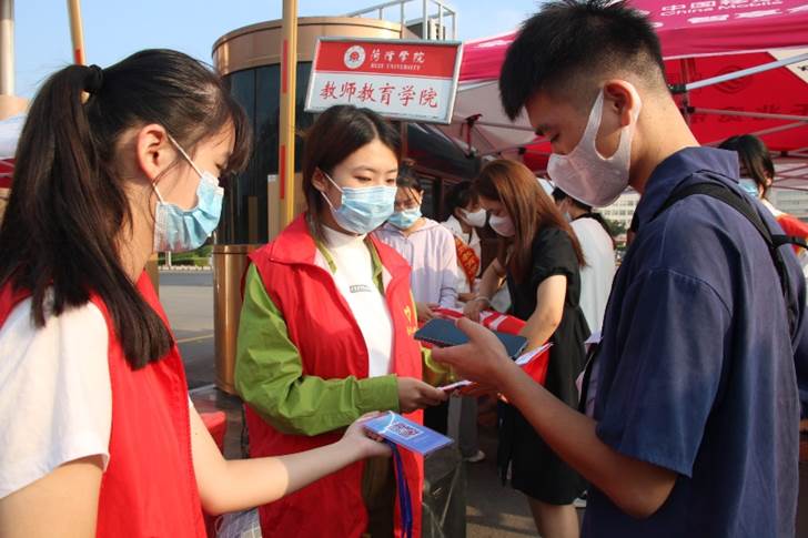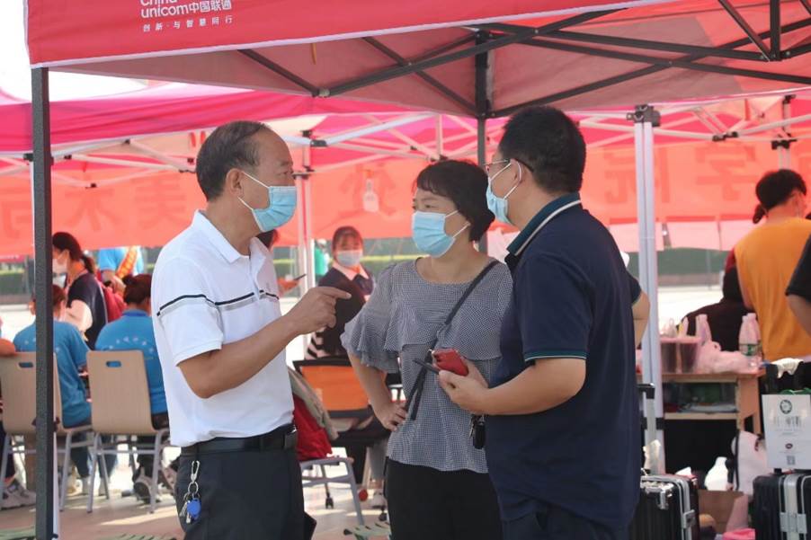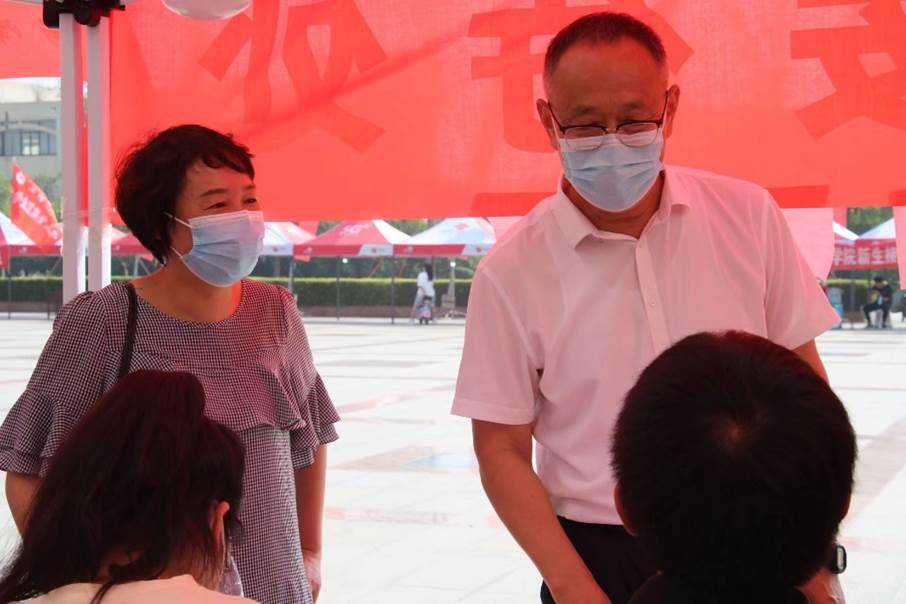 迎新现场,心系学子的教师教育学院领导老师们亲切地同新生交谈,询问新生们报到的问题与需求,向志愿者们了解迎新的工作进程并给予工作上的指导,给予了现场志愿者们满满的动力,同时也让新生们感受到暖暖的关爱。