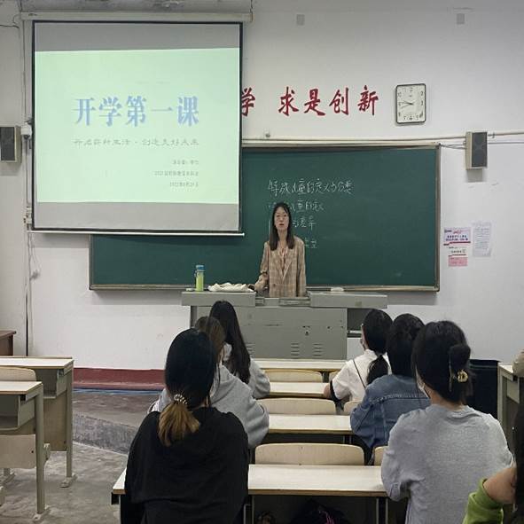 老师们根据不同班级的专业特点,分别从理想信念、爱国担当、思想认识、学业规划、习惯养成、安全教育等方面进行了讲授。姜保周从习近平总书记对青年学生寄予的厚望出发,结合学前教育专业特点,与学生谈理想、谈价值观、谈学习、谈人才、谈生活、谈安全、谈新时代青年奋进方向,鼓励学生坚定理想信念,站稳人民立场,练就过硬本领,担当时代重任,让青春之光闪耀在强国之路上。李婷从思想政治教育、疫情防控、校园安全、职业规划等方面进行了讲授,辅导员老师结合各自具体负责工作内容展开详细讲解,引导同学们深入思考,鼓励同学们努力学习,奋发向上。