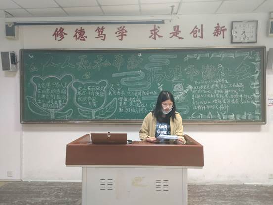 本次论坛以PPT和视频放映为主,学生演讲、讨论为辅,各班学生认真观看聆听。其中,2021级心理专业伍玉丹演讲的《善》全篇以爱为主题,讲述了人类社会的温暖与善意,呼吁同学们以青年力量助力社会公益事业。2021级小学教育公费二班黑板报以“五二零公益日,一起做好事”为主题,映入眼帘的是中国青年志愿者协会的标志,该标志由心、手、鸽子构成,寓意为:伸出援助之手,把爱心献给世界,将美好撒满人间。左侧为希望小屋标语,右侧为社会公益有关的优美句子。