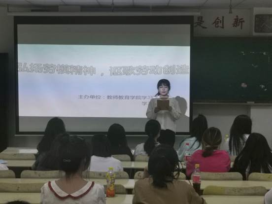 5月4日晚,教师教育学院学习部在8号教学楼412室举办以“弘扬劳模精神,讴歌劳动创造”为主题的劳模精神学习与宣讲活动。本次活动精妙绝伦,选手们演讲内容别出心裁,令人目不暇接。参赛选手列举了先进劳模的例子,从理想与现实等多个角度详细分析我们应该如何发扬劳模精神,呼吁我们要不怕吃苦,树立自己的目标,朝着目标坚持不懈地努力奋斗,实现自己的梦想。