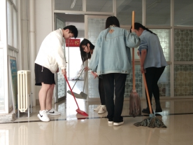 5月1日下午,教师教育学院宿管部在教师教育学院党站举办以“弘扬劳动精神,共建美好公寓”为主题的学生公寓卫生打扫活动,同学们分工有序,扫地拖地擦桌子,各司其职,卫生打扫活动进行地井然有序。同学们态度认真,精益求精,地面一尘不染,桌面光洁如新。