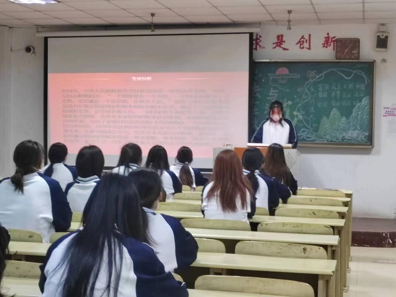 本次论坛以板报展示,PPT放映为主,学生演讲、交流讨论为辅的形式展开。其中,2022级学前教育专业3+4三班王新和彭馨平以“学法用法向未来”为主题进行演讲,并结合相关视频,向大家介绍我国宪法的基本内容,以简明的语言和清晰的逻辑,激发了同学们学习宪法的热情;2022级小学教育专业一班杨政和李雯以“法制进校园,安全伴我行”为题的演讲,情感饱满,主题明确,强调了宪法的重要性,呼吁同学们大力弘扬宪法精神,争做新时代法治青年。