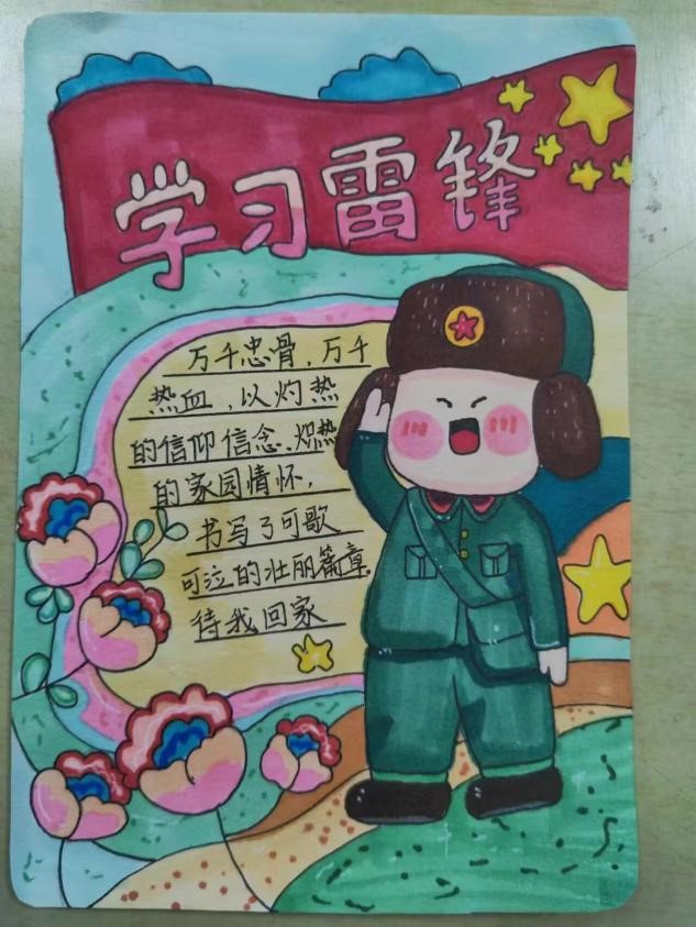 本次活动参赛作品立意新颖,题材多样,一张张精美的明信片上传递着同学们最真挚的情感。其中,2022级学前教育专业对口本班的李胜瑶以笔为媒,以画传情,展现了对雷锋同志的缅怀,呼吁同学们弘扬和传承雷锋精神;2022级学前教育专业3+4一班刘媛媛的作品以红白为主基调,简洁明朗却不失格调,彰显出作者对英雄的崇敬和对祖国的热爱。
