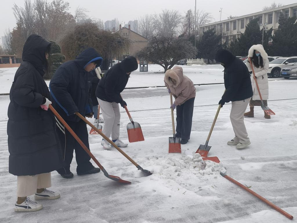 12月15日,我院在校园内开展清雪除障志愿服务活动。我院党委书记姜保周和辅导员带领同学们参与本次活动。
