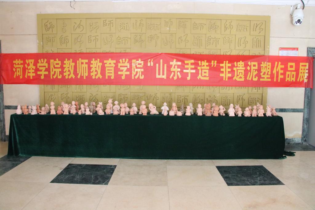 为弘扬中华优秀传统文化,充分发挥高校在非物质文化遗产教育和传承中的积极作用,增强非物质文化遗产保护传承意识,展示教学成果,12月28日,我院举行“山东手造”非遗泥塑展览活动。
