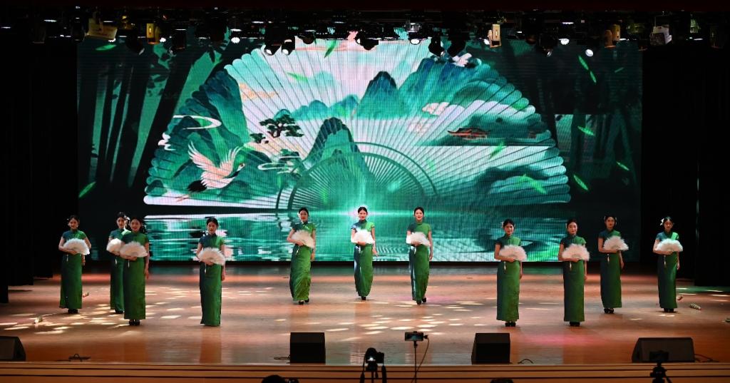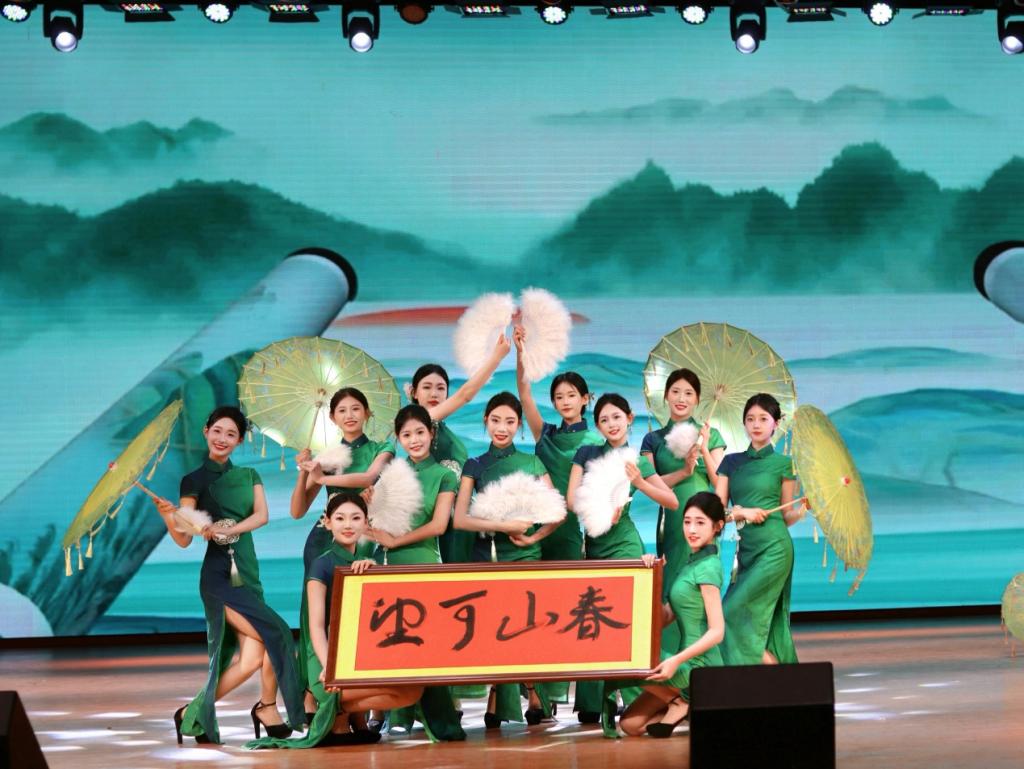 赛前,我院领导高度重视,精心准备选手选拔培训、服装道具等各个环节。各位选手积极备赛,刻苦训练。伴随着文雅悠长的音乐,我院选手身着青绿色刺绣旗袍,手持淡黄色水墨纸伞款款走上舞台,为观众带来旗袍秀《只此青绿》的精彩表演。她们轻盈的舞步,如同水波荡漾,缓慢而优雅,婀娜的身姿与音乐融为一体,每一个转身、每一个低眉都将旗袍的韵味展现得淋漓尽致,灵逸洒脱的书法使场内响起了连绵不断的掌声,为表演画上了圆满的句号。最终,我院荣获本次大赛一等奖。