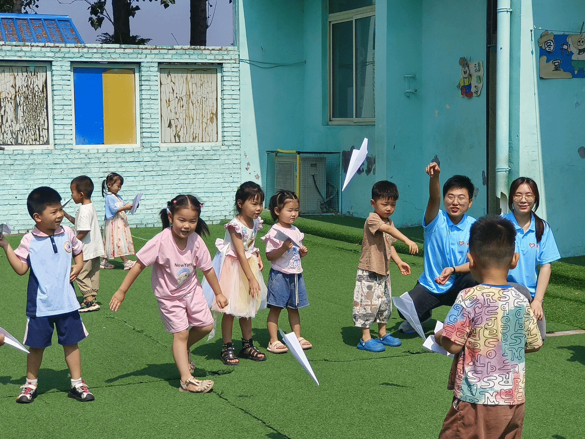 在这些活动中,最让我感动的是教小朋友们叠纸飞机。当我一步步演示如何折叠,孩子们那专注的眼神和随后兴奋的表情,让我意识到,这不仅仅是教会他们如何玩一个新游戏,更是在激发他们对世界的好奇心和探索欲。而当一架架由孩子们亲手折叠的纸飞机在空中翱翔时,我的心也随之飞扬。