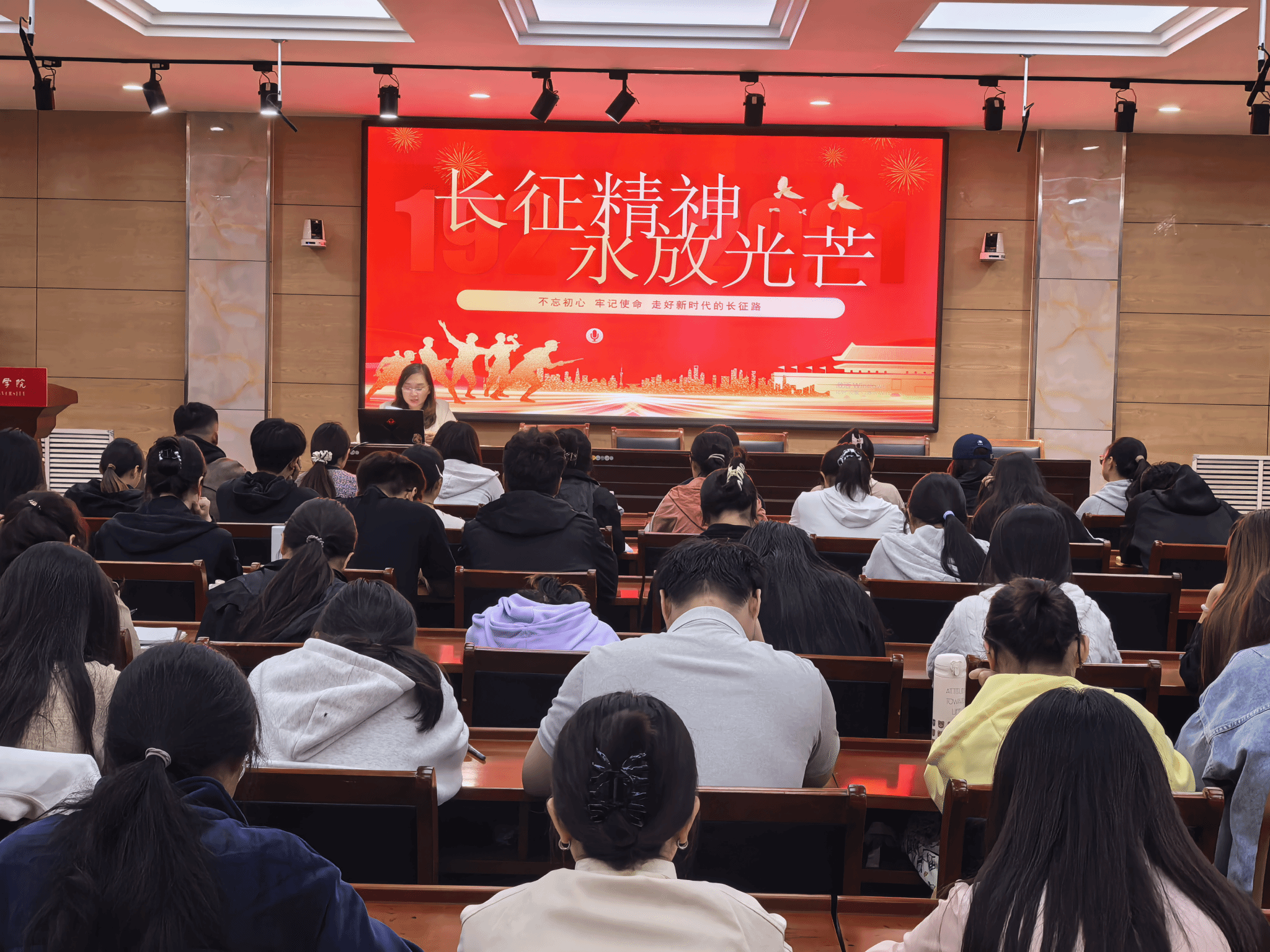 9月27日上午,我院在教师教育博物馆108室举行“长征精神,永放光”专题党课培训,党委副书记李婷为全体入党积极分子授课。
