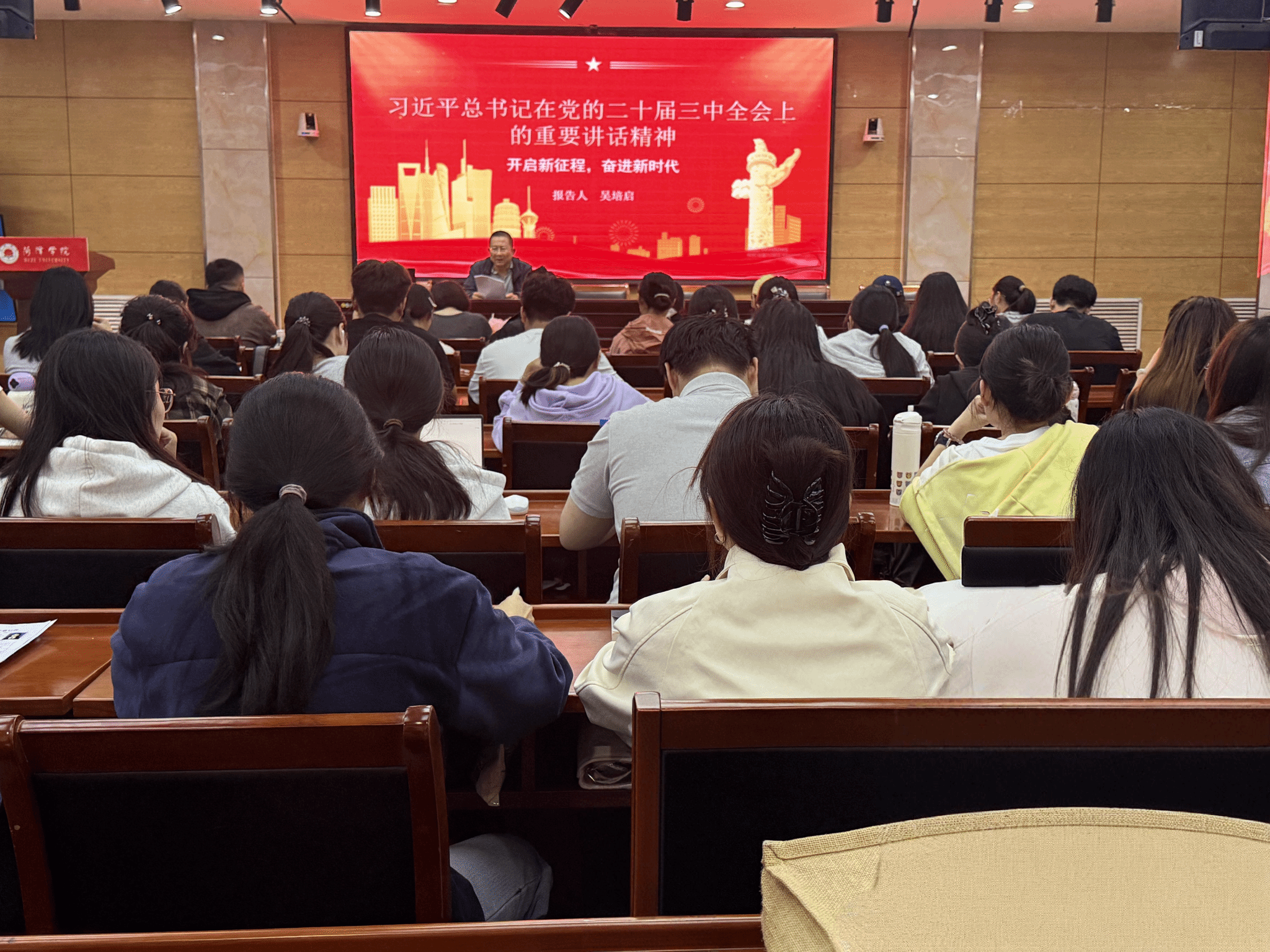 学生第二党支部书记吴培启以“习近平总书记在党的二十届三中全会上的重要讲话”为主题讲授专题党课。课程系统阐释了全面深化改革的主题主线、重大原则与实践路径,强调学习贯彻全会精神的重要意义。通过深入学习,学员们进一步增强了对国家发展方略的理解,坚定了理想信念,明确了责任使命。