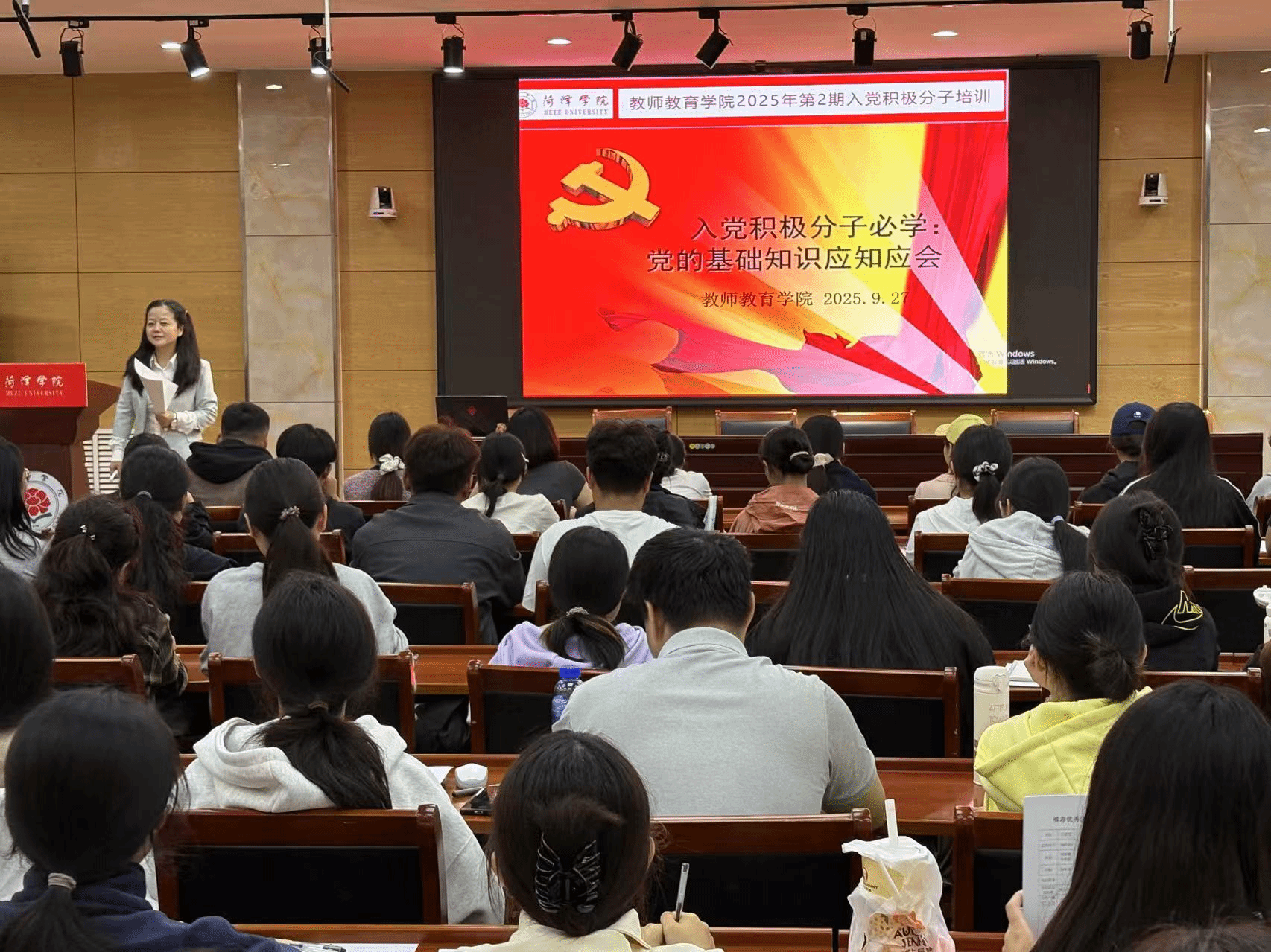 为切实加强入党积极分子培养教育,提升理论素养与党性修养,我院9月25日-28日组织开展2025年第2期入党积极分子系列培训。由学生党支部书记主讲,全体入党积极分子参加。