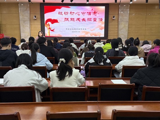 10月24日下午,我院在教师教育博物馆108室举行2025年发展对象培训党课。副院长张金凤以“砥砺初心守信念,赋能成长担重任”为题,为全体发展对象讲授专题党课。