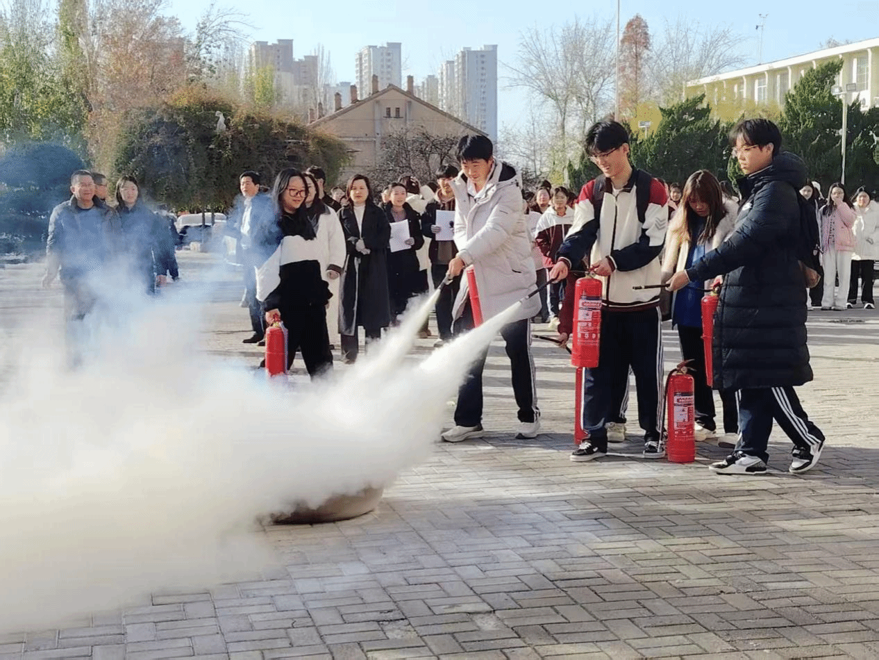 此次演练模拟科技楼一楼前区域突发火情,火势伴随烟雾快速扩散,我院领导第一时间启动消防应急预案,联动学校安全保卫处消防科,组织现场人员撤离。大家严格按照要求,捂住口鼻、弯腰低姿,快速且有序地疏散至指定安全区域。整个应急疏散演练节奏紧凑、流程顺畅,顺利达成预期目标。演练结束后,张德雷为我院师生开展了现场教学,重点讲解了户外火情的预防要点、灭火器的规范操作及突发状况的应急处置技巧。随后,在工作人员的指导下,老师与同学们轮流进行灭火器实操演练,进一步巩固灭火技能。