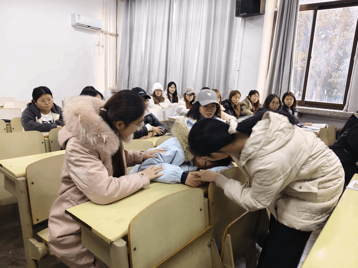 为提升学生在自主学习场景下应对突发健康事件的互助与处置能力,进一步筑牢校园安全防线,12月26日,我院在2号教学楼102室组织开展“自习期间学生突发晕倒”应急处置专题演练。党委副书记李婷、学工办副主任李怡、辅导员吴培启及2024级学前教育夏本班全体同学参与活动。