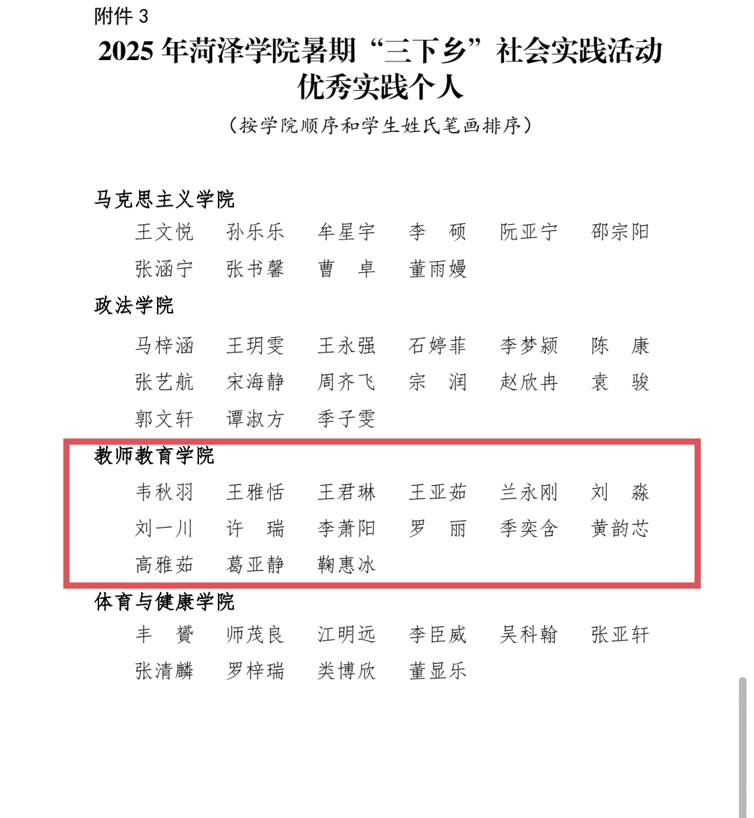 近日,菏泽学院2025年暑期“三下乡”社会实践活动表彰结果正式公布,我院凭借扎实的组织工作与优异的实践成果,斩获多项校级荣誉。