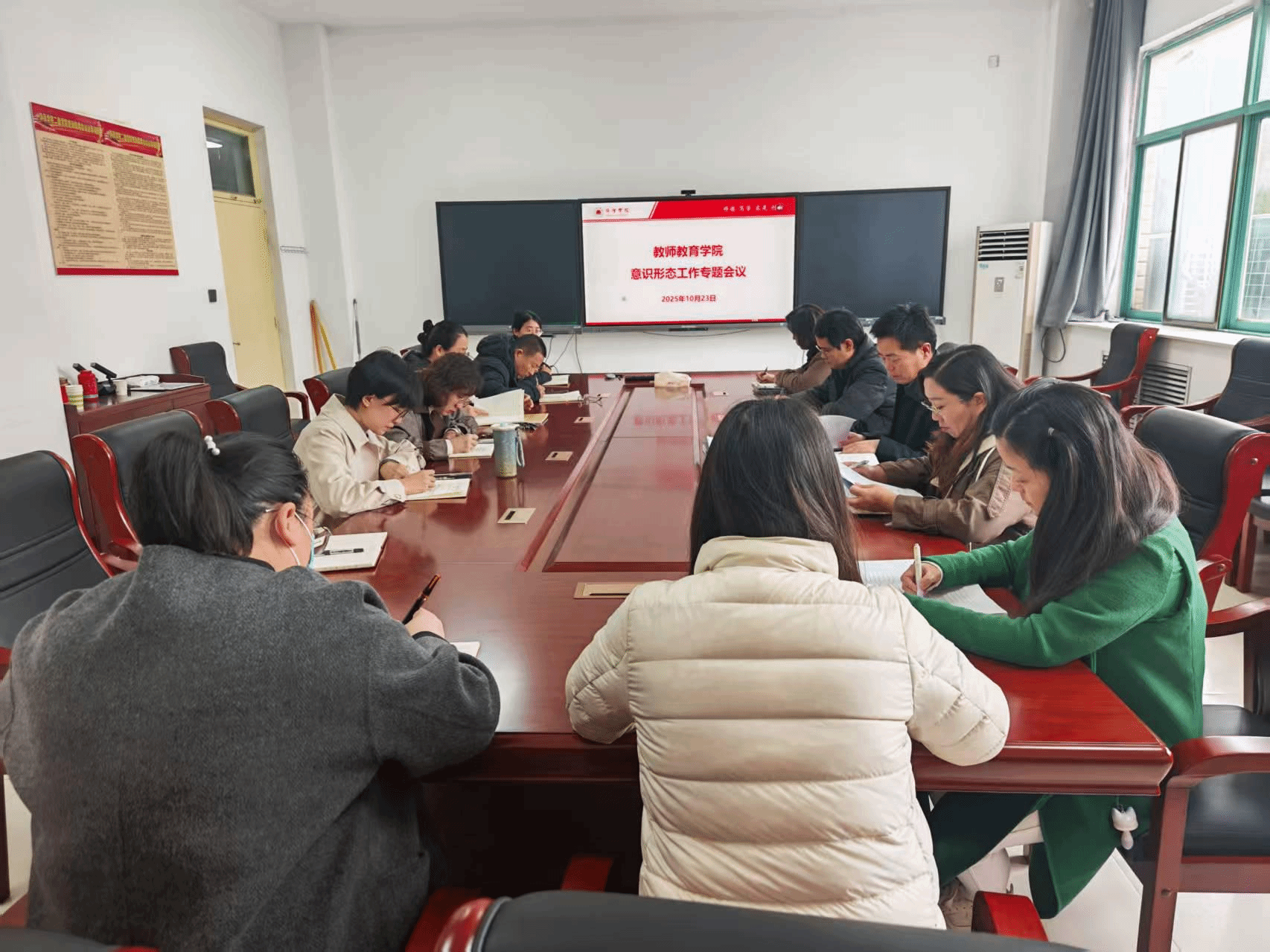 会议强调,学院要进一步统一思想认识,提高政治站位,把意识形态工作的要求贯穿于学科建设、师资培育、学生管理的全过程、各环节。持续强化制度执行与责任落实,不断提升舆情分析与应急处置能力,全力维护意识形态领域的安全与稳定,为培养高素质基础教育人才营造清朗健康的育人环境,为学校意识形态工作整体推进贡献力量。