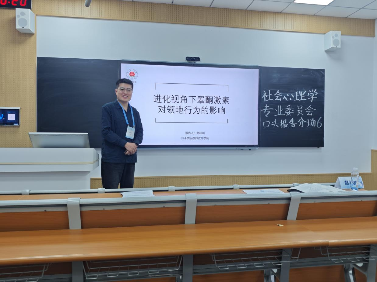 赵超越老师应邀主持了社会心理学专业委员会口头报告分会场的报告与交流活动,并以《进化视角下睾酮激素对领地行为的影响》为题作学术报告,与现场师生进行了积极的互动交流。