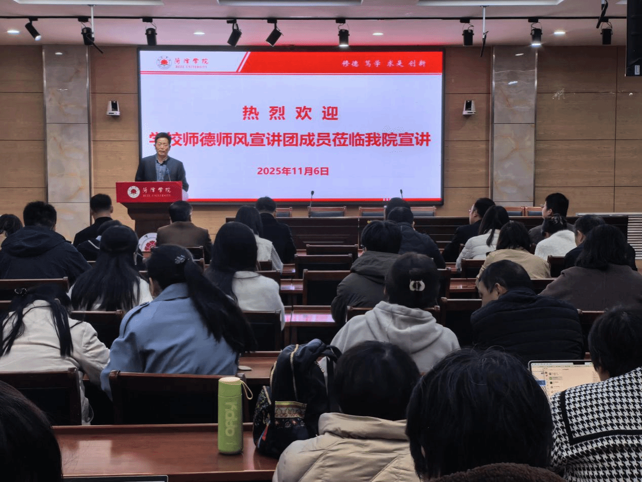 11月6日下午,学校师德师风宣讲团成员莅临我院宣讲。学校教师工作部部长赵玉松,宣讲团成员外国语学院副院长刘静、药学院副院长王新潮、计算机科学系党支部书记刘文锋出席会议。宣讲会由我院党委书记王永中主持,院长韩丕国及全体教师参加。