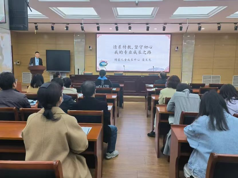 讲座伊始,栾文龙首先分享了自己为何选择特殊教育这一职业道路。他提到,自己从小就对弱势群体抱有深厚的同情心,而特殊教育正是他实现自我价值、帮助他人的最佳途径。在讲述中,他深情地表达了对特殊儿童的关爱与理解,以及对特殊教育事业的坚定信念。