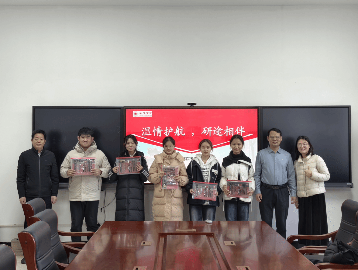 会议伊始,王永中、韩丕国亲手为每一位考研学子送上中性笔、涂卡笔、橡皮等考试必备文具。随后,两位领导与同学们亲切交流,仔细询问大家的复习进度、心理状态以及备考中遇到的难题,耐心叮嘱同学们合理规划作息、保持积极心态,以从容自信的姿态迎接考试;同时鼓励大家坚定信念、全力以赴,在考场上发挥出最佳水平。交流尾声,领导们与学子们一同合影留念,将这份温暖的鼓励定格成珍贵的瞬间。