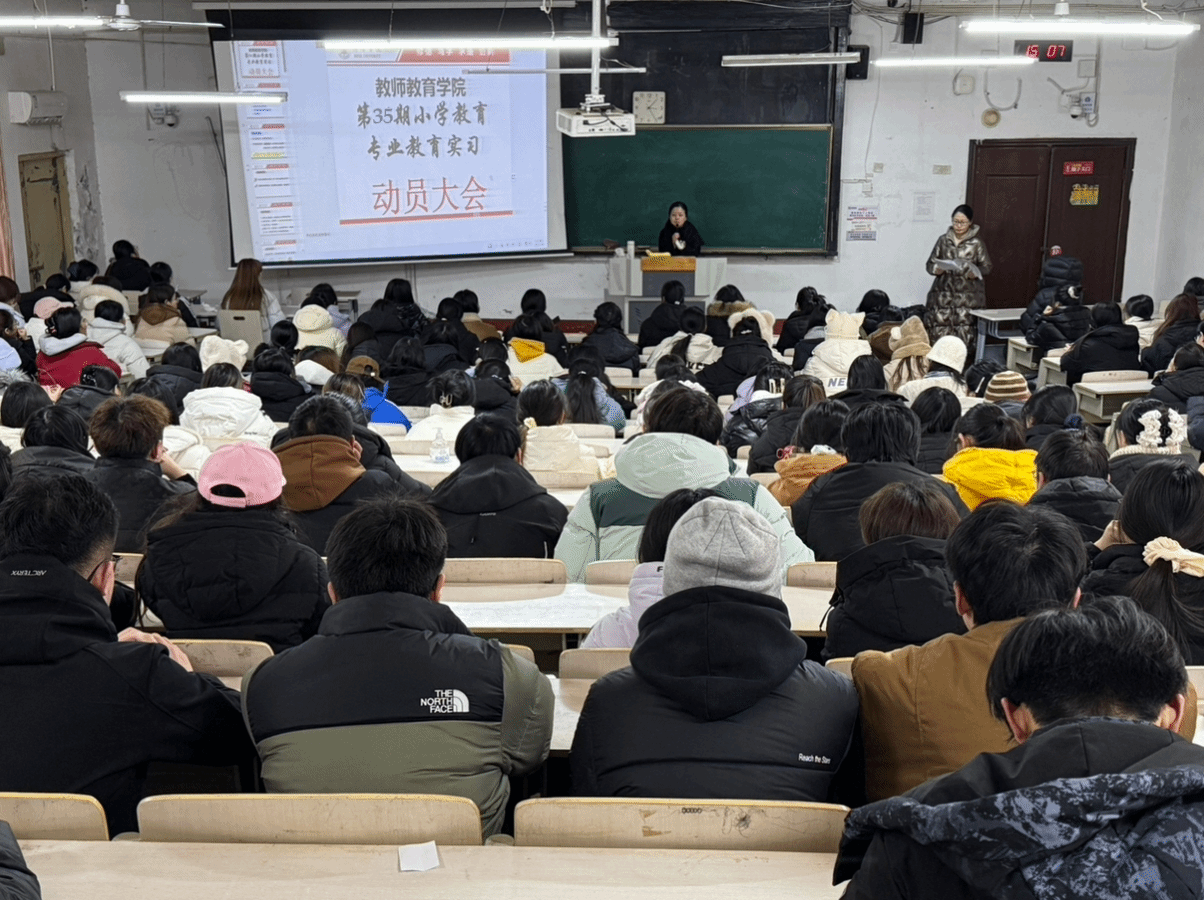 1月20日下午,我院第35期小学教育专业实习动员大会在2号教学楼106室举行。我院辅导员南晓娟、小学教育系副主任刘艳梅以及2025级小学教育专业专升本全体学生参加本次动员大会。