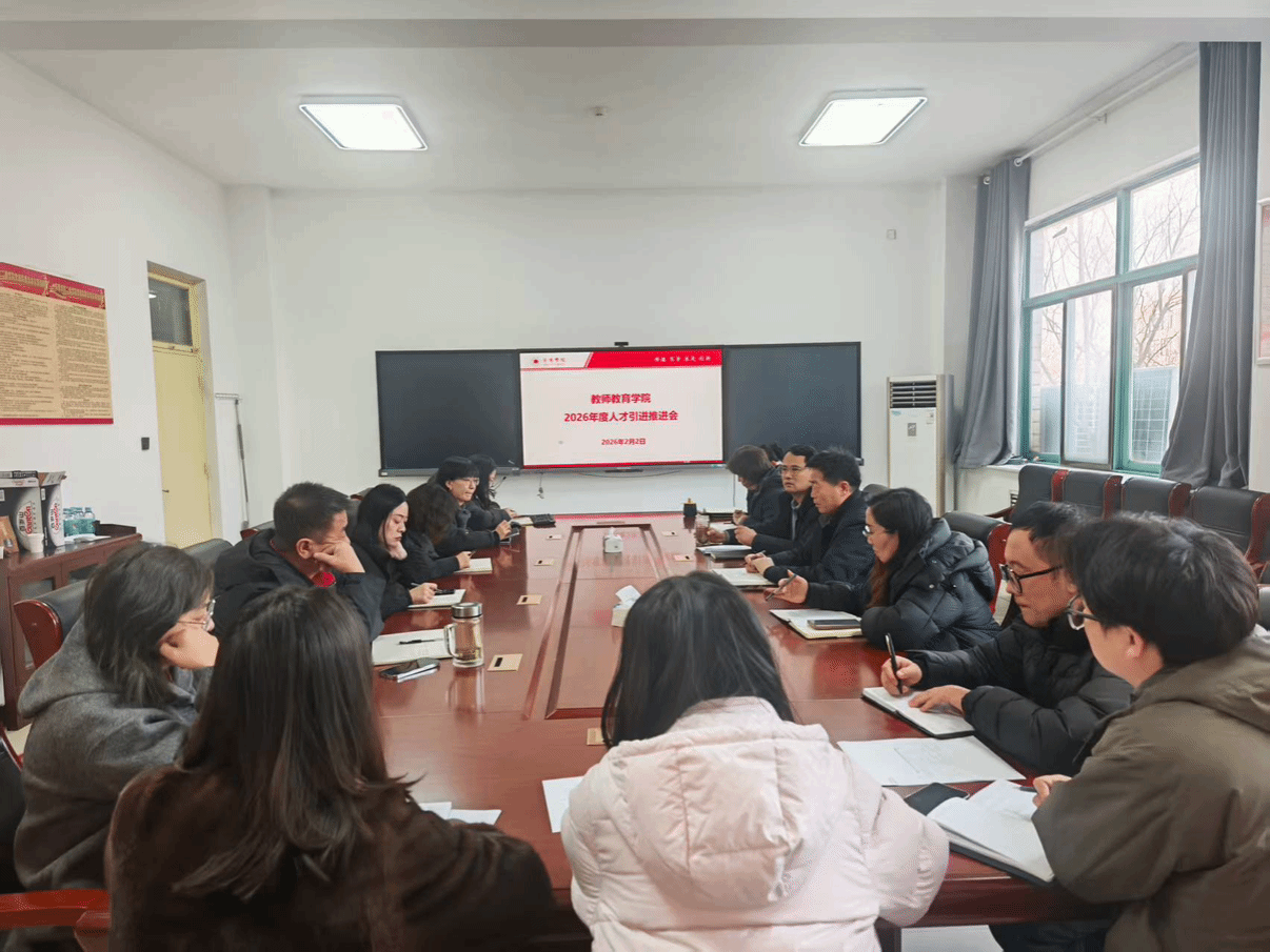 为集聚高层次人才资源、提升学科建设水平,2月2日,我院在4号教学楼312会议室召开2026年度人才引进推进会。我院党委书记王永中、院长韩丕国、党委副书记李婷、副院长张金凤及各系、各科室负责人参加。