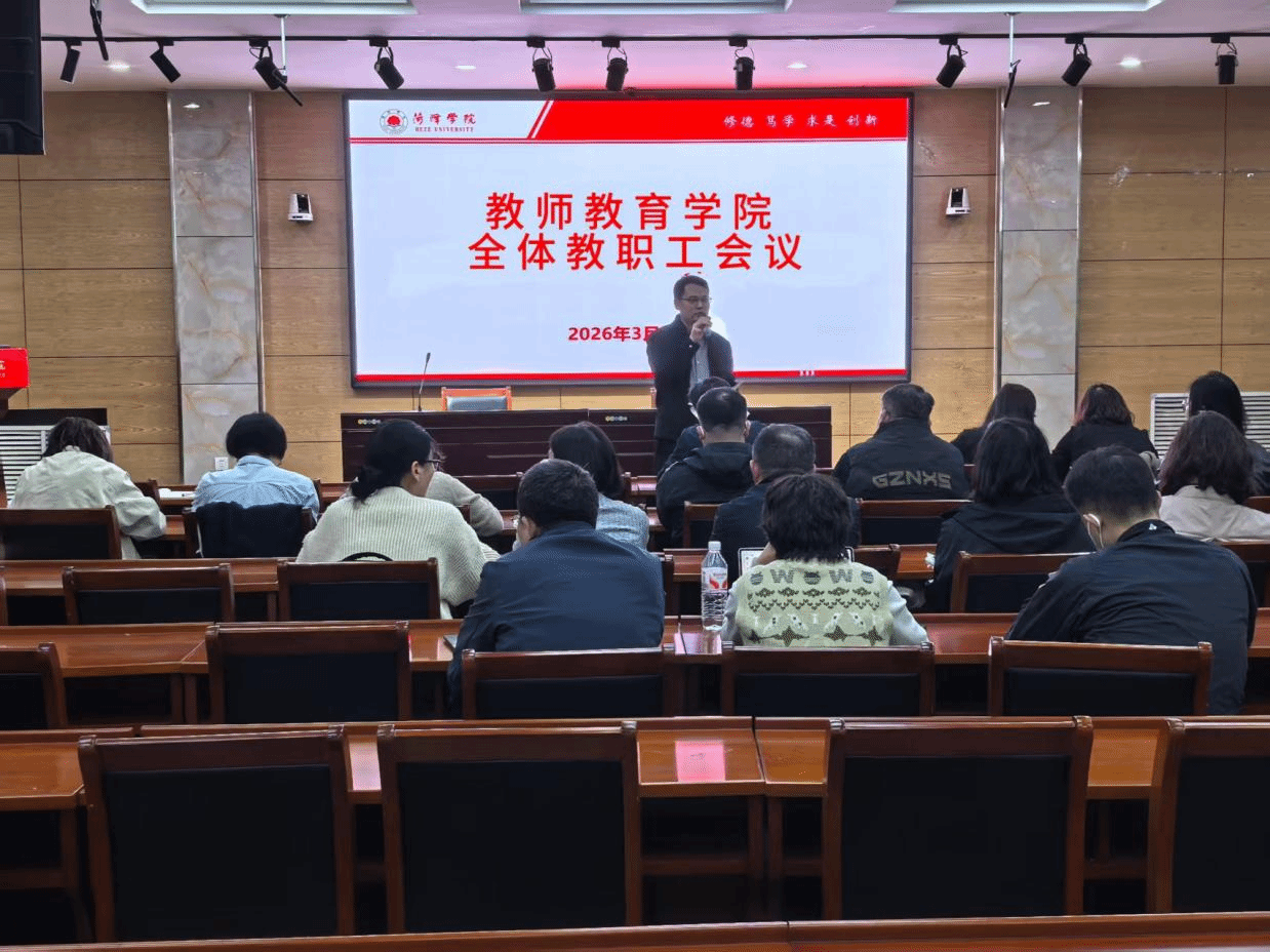 3月26日下午,我院在教师教育博物馆108室召开全体教职工会议,院长韩丕国主持会议并讲话,全体教职工参加。