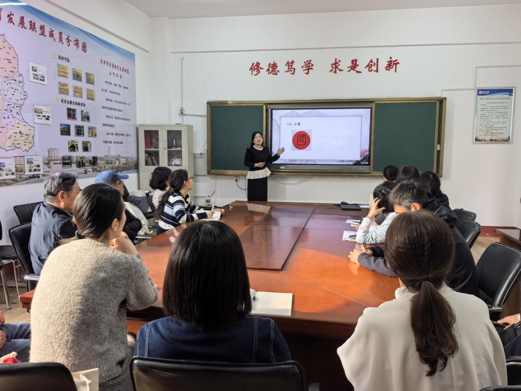会上,熊秀婵首先进行示范授课,围绕汉字的演变历程展开教学,生动展现了汉字文化的发展脉络与深厚内涵。授课结束后,与会教师围绕课程思政元素挖掘与融入路径开展集体研讨,大家各抒己见、氛围热烈。南晓娟、孙德顺先后结合工作与教学实际交流分享,与会教师踊跃发言、积极研讨,共同探索思政元素与课程教学的有机融合,扎实落实立德树人根本任务。最后,陈娟对本节课的思政融入方向进行指导点评,提出要充分挖掘书法与汉字文化中的历史厚重感,将汉字演变与国家历史发展紧密结合;同时注重家国情怀培育,把“国”字内涵、方正做人的道理与学生品德修养、为人处世相结合,让思政教育更具温度与实效,为在场教师带来深刻启发。