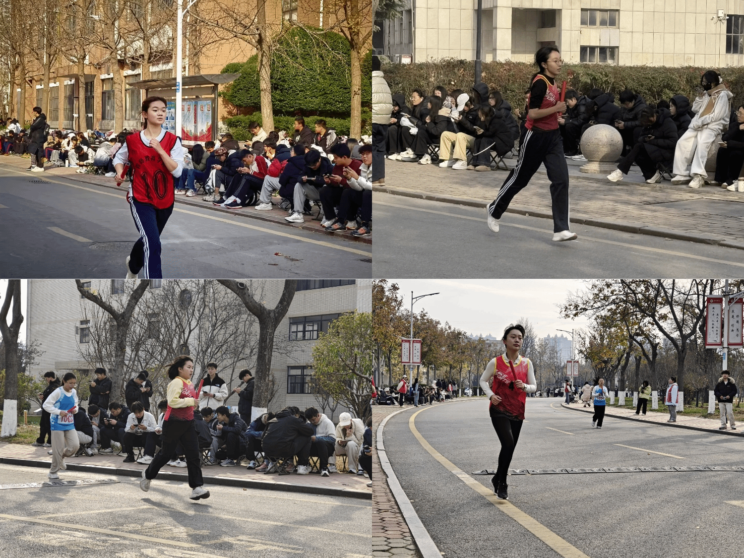 本次比赛汇聚全校各学院代表队,每院选派25名运动员参赛。赛道以田径场为起点及终点,环绕健身路、诚信路、陶然路与广场一周。赛前,所有选手齐聚起跑线,凝神聚气、蓄势待发。发令声响,我院运动员手持接力棒奋勇出发,他们精神昂扬、配合默契,一棒接着一棒不断向前,在初冬温暖的阳光下,奋力奔跑的身影格外动人。赛场上,选手们坚持不懈、全力以赴的拼搏姿态,绘就了一道动人的风景;场边观众更是热情澎湃,加油声与呐喊声此起彼伏,响彻运动场的每个角落,为这个冬日校园注满了青春的激情与活力。最终,我院凭借出色的组织协调、选手的奋勇拼搏及师生的凝心聚力,荣获“优秀组织奖”。