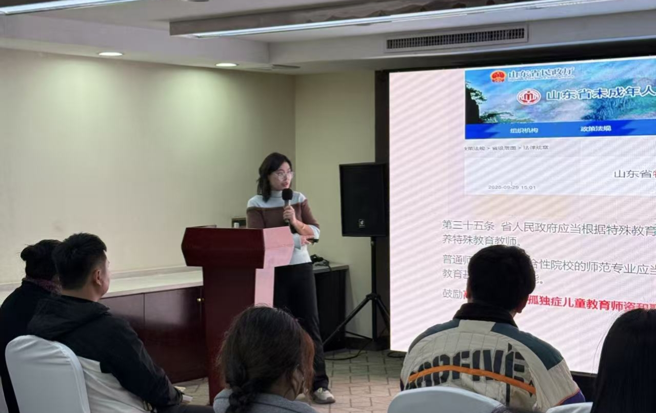 11月30日,一场以“关爱星星的孩子”为主题的孤独症谱系障碍儿童公益讲座在菏泽温情开讲。本次活动由菏泽沐心向阳融合幼儿园主办,我院教师王秀丽为主讲,面向家长、教师及关心特殊教育的各界人士,深入探讨了孤独症的科学认知、政策支持与融合教育之路,传递了温暖与希望。