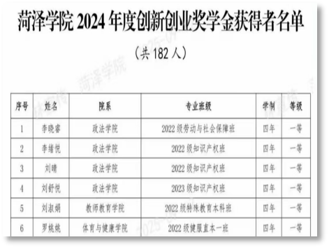 5.荣获2025年度菏泽学院创新创业奖学金一等奖