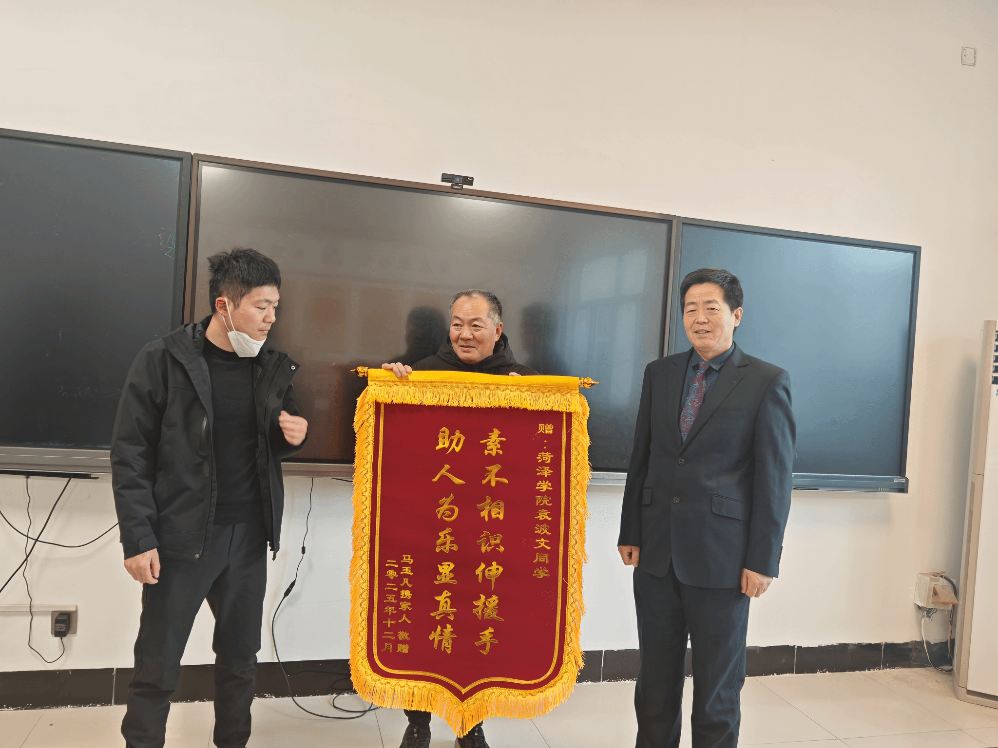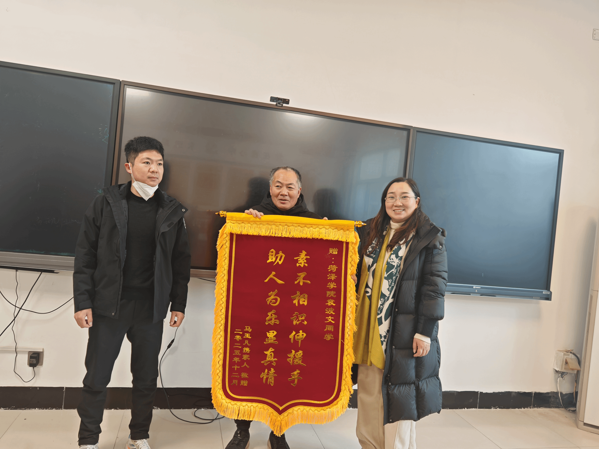 一面锦旗,见证温情。12月26日上午,印有“素不相识伸援手,助人为乐显真情”字样的锦旗被送至我院,承载着受助家庭真挚的谢意,更映照出我院学子向上向善的精神风貌。