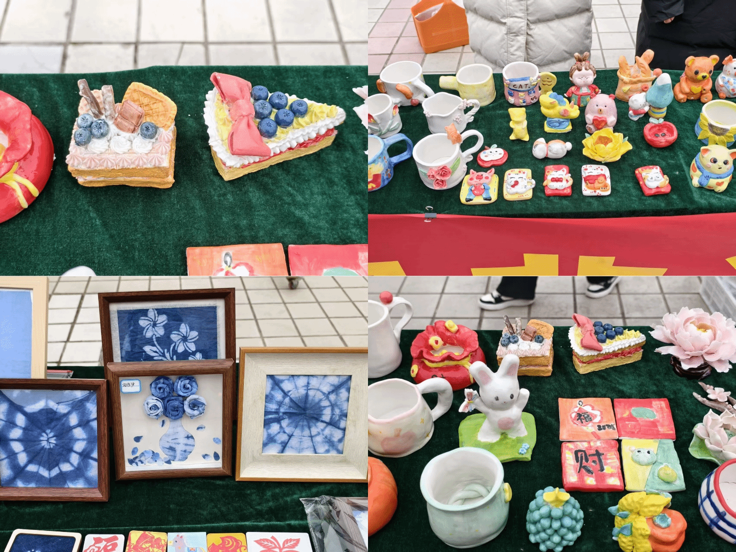 书签、冰箱贴、扎染装饰画、瓷牡丹花卉、吉祥摆件等精美小品整齐陈列,兼具传统韵味与实用价值。寓意“柿柿如意”的柿子摆件、雅致的瓷牡丹、荷花、萌趣的卡通动物摆件,尤其是贴合马年的生肖马摆件备受青睐,吸引众多师生驻足围观、竞相购买,现场人气十足。