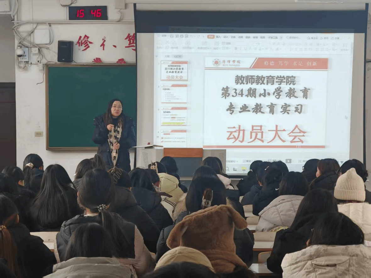 本次教育实习动员大会的顺利召开,让同学们厘清了实习工作脉络、明确了核心任务与要求,强化了安全规范意识,进一步坚定了大家的教育初心,为实习工作有序、高效推进筑牢了坚实基础。