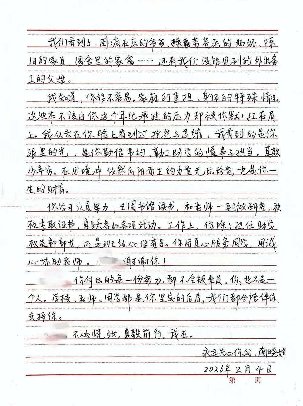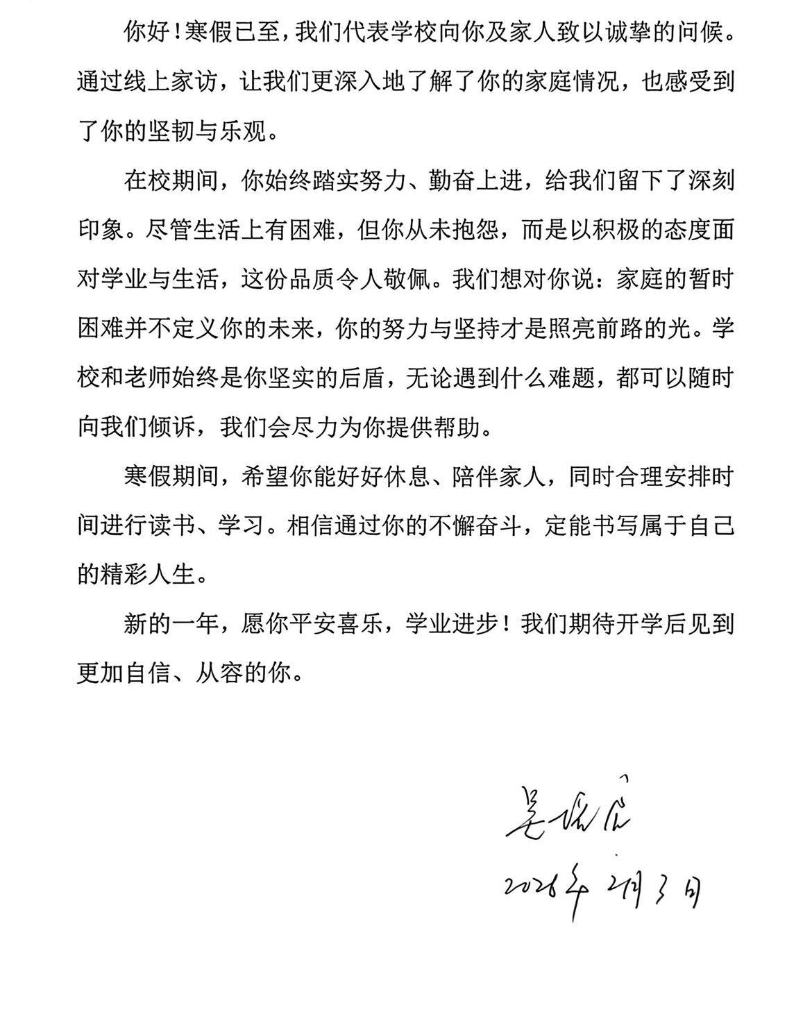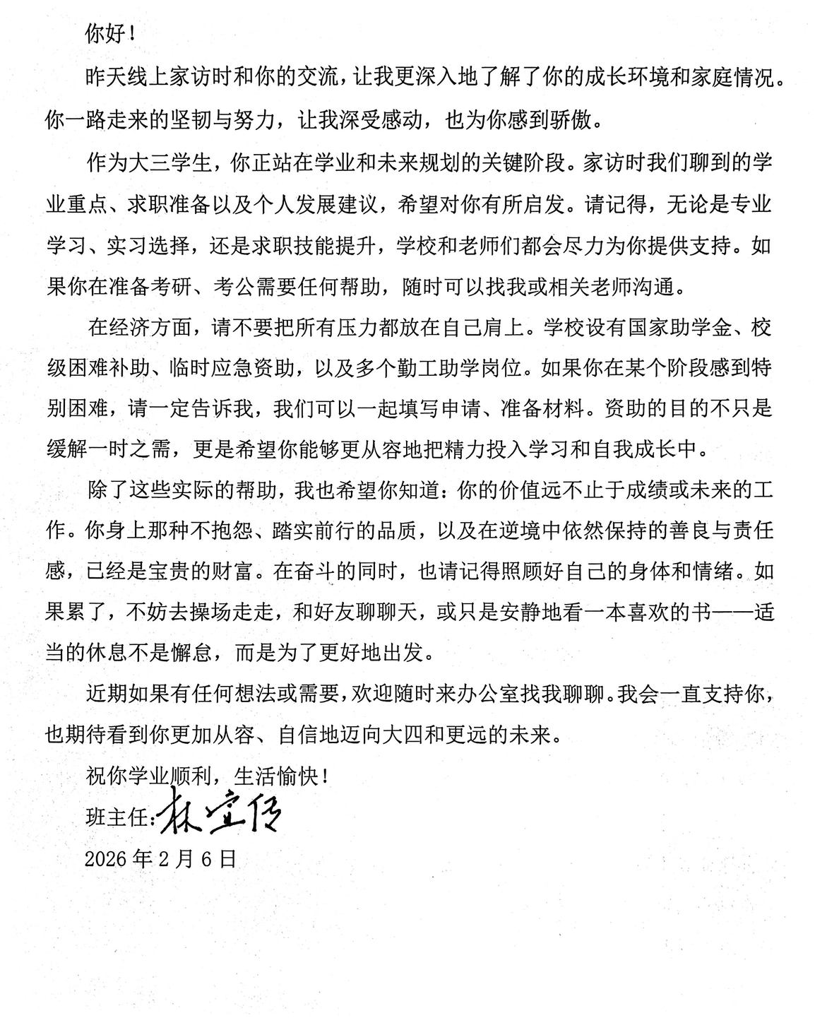 特别值得一提的是,老师们还为受访学生精心撰写了一封信。信中细数学生成长点滴,肯定其努力与进步;针对学生面临的困惑与挑战,给出精准建议与诚挚鼓励,字里行间饱含学院对学生的深切关怀与殷切期望。