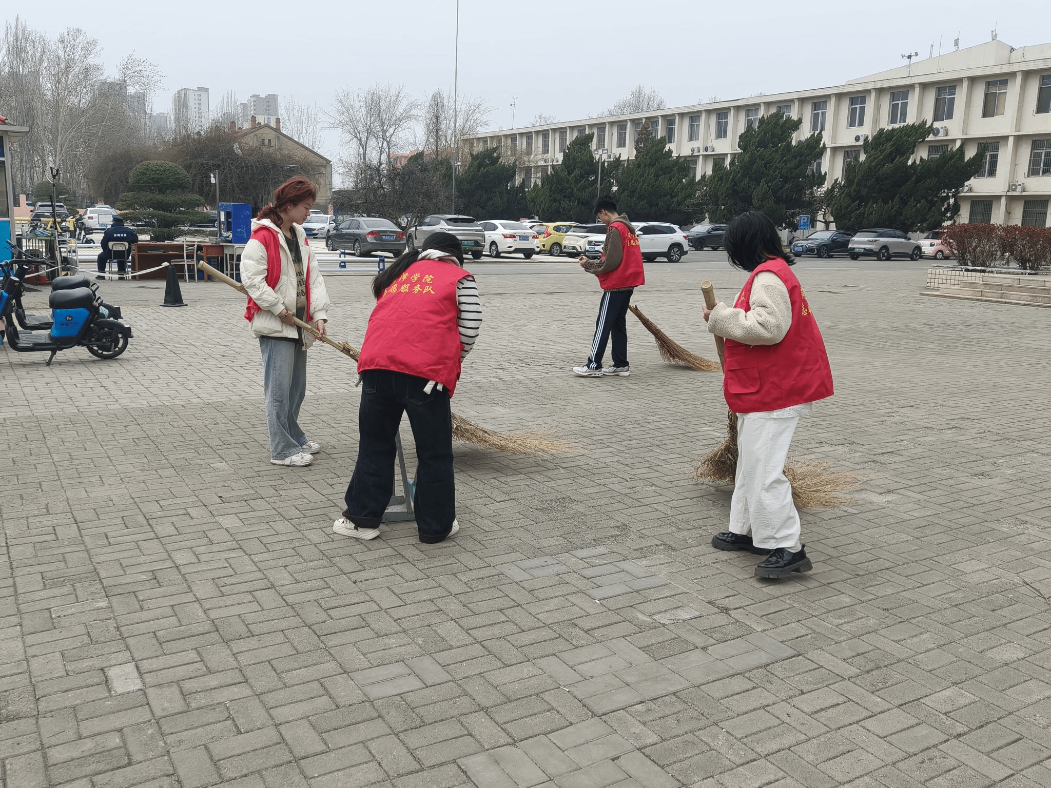 活动中,志愿者们身穿红色志愿马甲,手持扫帚、簸箕、垃圾夹等工具,对校园公共区域进行全方位清洁。大家分工协作、默契配合,仔细清扫路面垃圾、捡拾绿化带杂物,认真清理墙角、花坛缝隙等卫生死角,全程干劲十足,用双手扫除脏乱,让校园环境焕然一新,忙碌的身影成为校园里一道暖心风景。