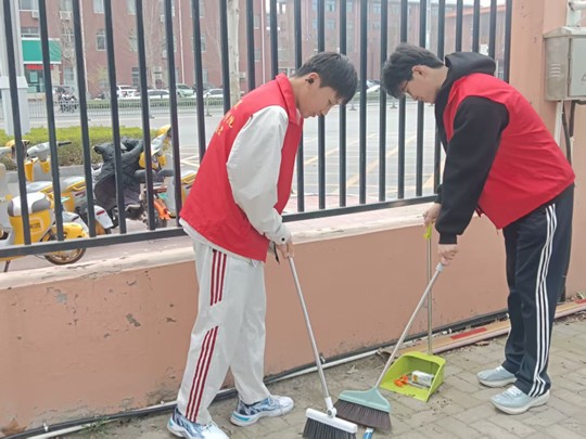 活动中,志愿者们携带扫帚、抹布、垃圾夹、垃圾袋等工具,依次对校园主干道、绿化带、教学楼周边区域及宣传栏等进行了全面清理。同学们分工明确、配合默契,重点整治卫生死角、捡拾杂物、擦拭公共设施,展现了认真负责、踏实肯干的工作态度。在劳动过程中,大家热情高涨、相互协作,用实际行动诠释了“奉献、友爱、互助、进步”的志愿精神,充分展现了新时代青年向雷锋同志学习的良好风貌。