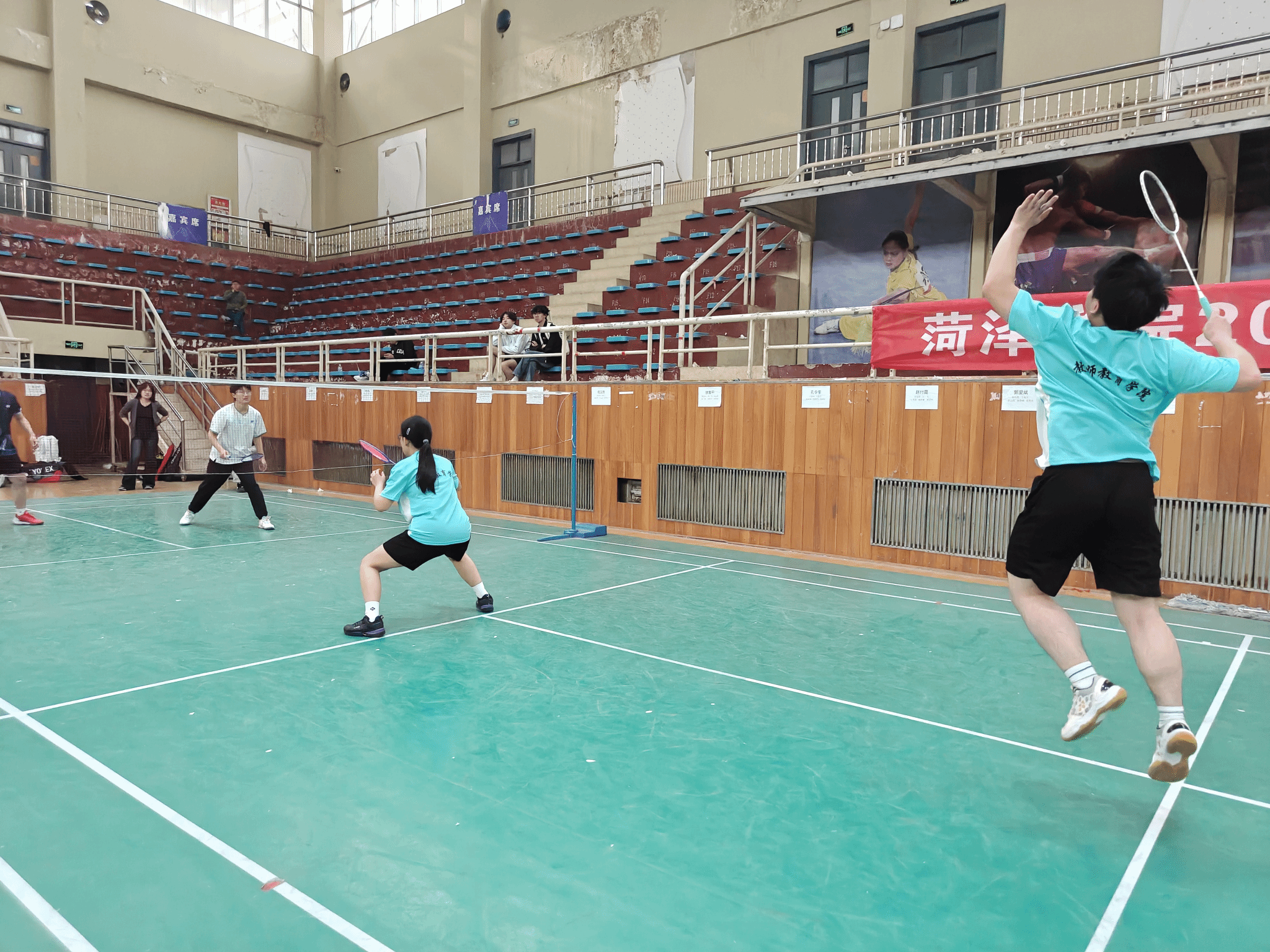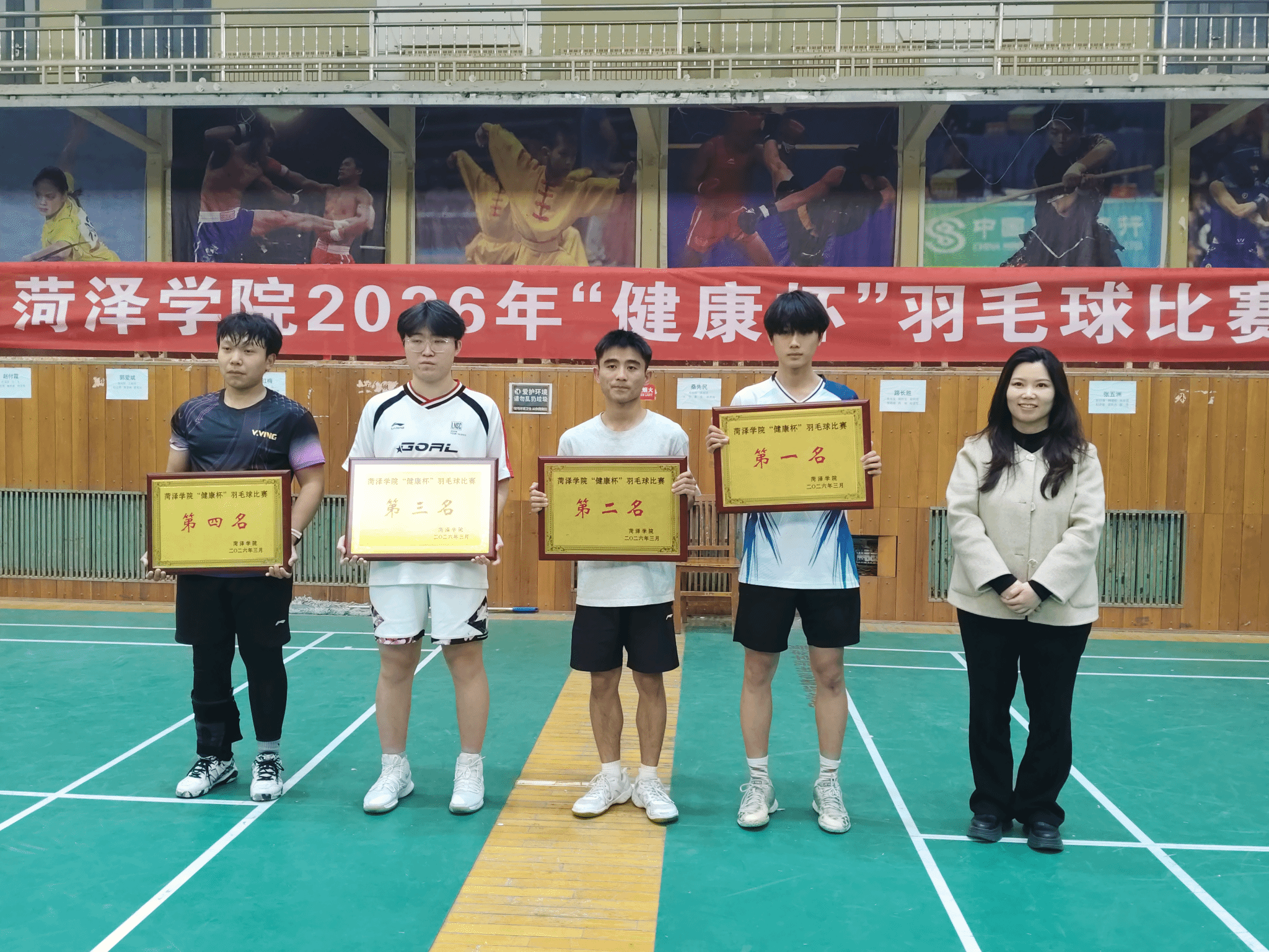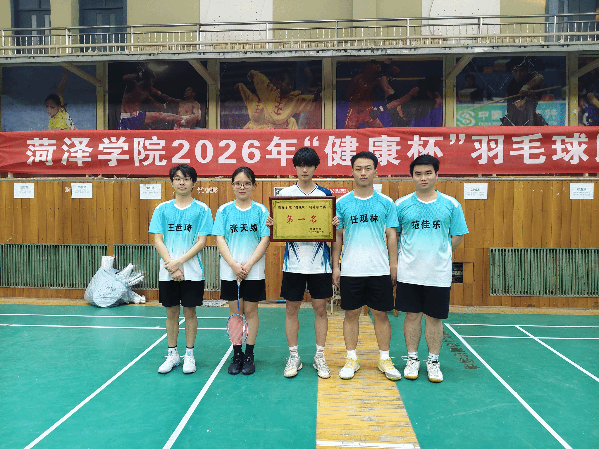 3月27日,我校2026年“健康杯”羽毛球比赛圆满落幕。我院羽毛球队凭借默契的团队协作、精湛的球技水准和永不言弃的拼搏精神,一路披荆斩棘、力克强敌,最终斩获团体第一名的优异成绩。我院党委书记王永中、党委副书记李婷以及辅导员代表亲临赛场,为参赛队员加油鼓劲。