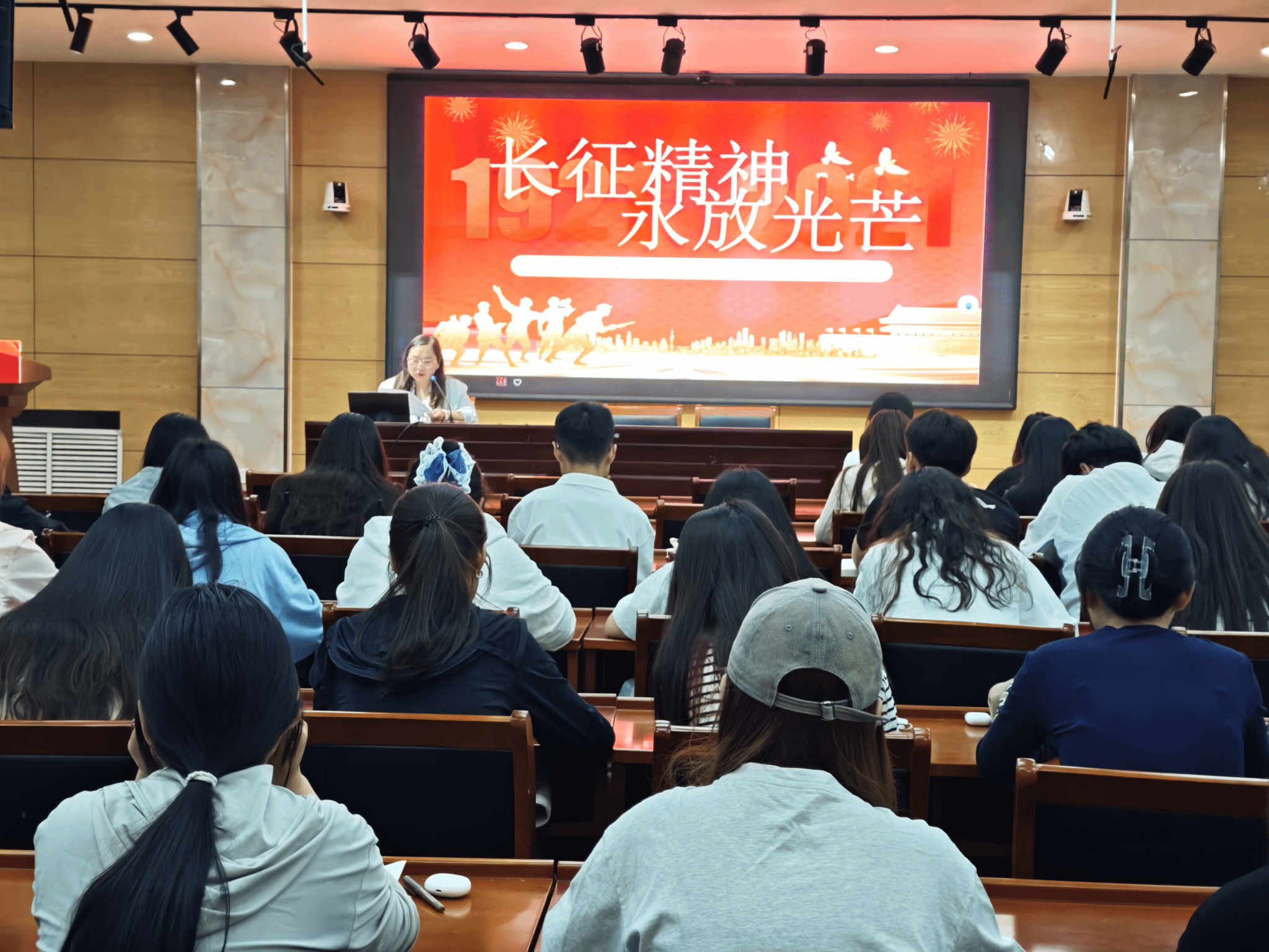 活动中,李婷首先围绕长征的历史背景展开讲解,引导学员了解长征途中的代表性历史战役和重大事件,深入阐释长征胜利的伟大意义。其次,她结合习近平总书记在纪念红军长征胜利80周年大会上的重要讲话精神,阐释长征精神的核心要义与时代价值。李婷强调,全体学员要深刻领悟长征精神的实质,以坚定的理想信念锤炼品格,以务实的担当作为践行初心使命。最后,李婷鼓励全体学员,要深刻领会长征精神的实质与时代内涵,将其融入日常学习、生活与实践中。